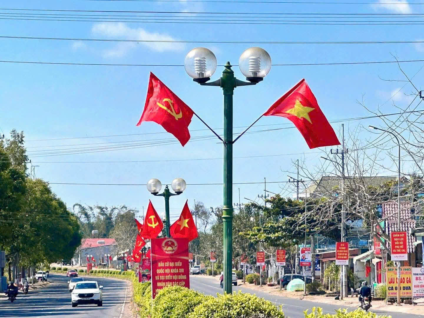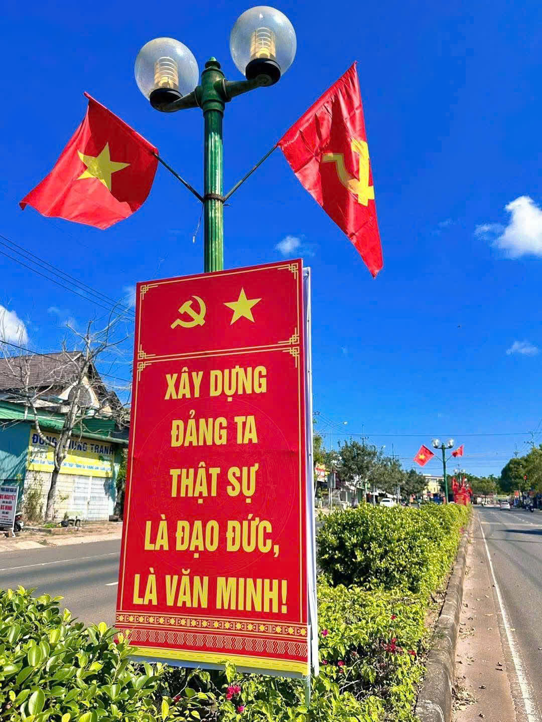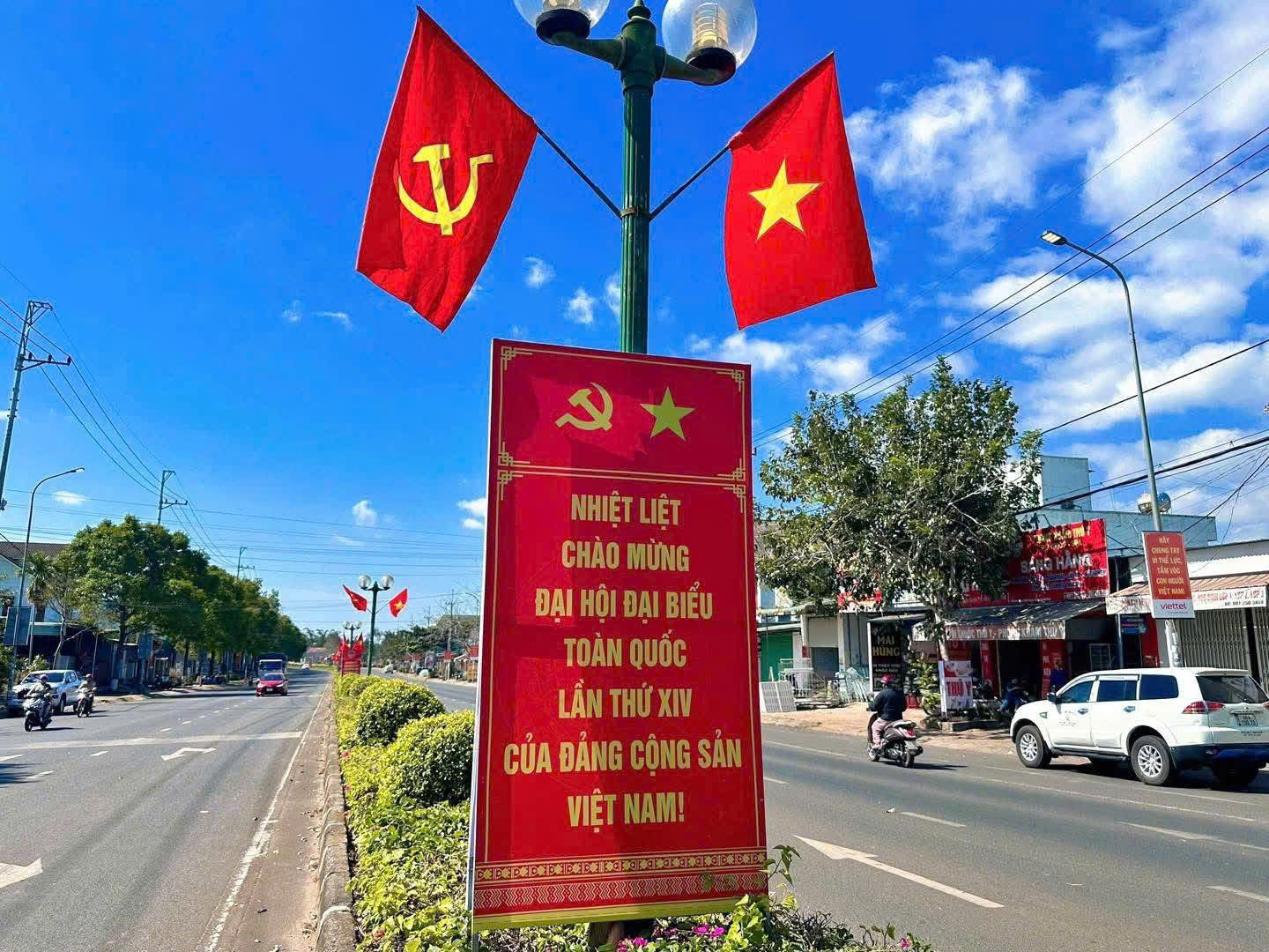 Phường Đông Gia Nghĩa rực rỡ cờ, pano chào mừng Đại hội Đảng toàn quốc lần thứ XIV 🇻🇳🎉 Những ngày này, phường Đông Gia Nghĩa khoác lên mình diện mạo mới với sắc đỏ rực rỡ của cờ Tổ quốc, băng rôn, pano, áp phích, khẩu hiệu tuyên truyền 🚩✨. Các tuyến đường trục chính, khu trung tâm và khu dân cư được trang hoàng đồng bộ, tạo không khí trang trọng, phấn khởi hướng về Đại hội đại biểu toàn quốc lần thứ XIV của Đảng – sự kiện chính trị trọng đại của đất nước 📢. Theo kế hoạch, Đại hội sẽ diễn ra từ ngày 19 đến 25/01/2026 tại Thủ đô Hà Nội 🏛️. Hòa chung không khí thiêng liêng, tự hào của cả nước, công tác tuyên truyền trực quan tại phường Đông Gia Nghĩa được triển khai đồng bộ, hiệu quả 🎯. Cờ Tổ quốc tung bay trên các tuyến đường, băng rôn, khẩu hiệu được bố trí trang trọng; sắc đỏ cờ hoa lan tỏa khắp các khu dân cư, thể hiện niềm tin, sự kỳ vọng và tinh thần trách nhiệm của cán bộ, đảng viên và Nhân dân hướng về Đại hội 🇻🇳🤝. Việc trang trí, tuyên truyền chào mừng Đại hội XIV không chỉ mang ý nghĩa chính trị – văn hóa sâu sắc 🎨📘, mà còn góp phần giáo dục truyền thống cách mạng, bồi đắp niềm tự hào dân tộc, củng cố niềm tin của Nhân dân đối với sự lãnh đạo của Đảng; qua đó khơi dậy tinh thần đoàn kết, ý chí vươn lên, quyết tâm thực hiện thắng lợi các nhiệm vụ phát triển kinh tế – xã hội của địa phương 💪🌱. Với phương châm “Đoàn kết – Dân chủ – Kỷ cương – Đột phá – Phát triển” ⭐, Đại hội đại biểu toàn quốc lần thứ XIV của Đảng có ý nghĩa đặc biệt quan trọng, định hướng tầm nhìn và các quyết sách chiến lược, tạo nền tảng để đất nước vững bước tiến vào kỷ nguyên phát triển mới 🚀. Trong không khí rực rỡ cờ hoa, phường Đông Gia Nghĩa thể hiện rõ sự đồng thuận, niềm tin và kỳ vọng lớn lao hướng về Đại hội XIV của Đảng, khẳng định mối quan hệ gắn bó máu thịt giữa Đảng và Nhân dân 🤝❤️ – nguồn sức mạnh to lớn để địa phương cùng cả nước vững tin bước vào chặng đường phát triển mới.